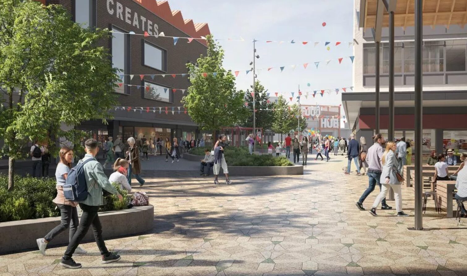 Over the next decade, the regeneration plans will create a vibrant new public square, shops, sustainable office buildings, community and cultural spaces, and up to 2,000 new homes.
