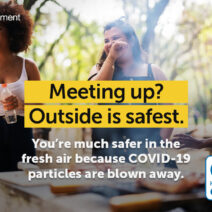 Remember hands, face, space and fresh air - Meeting up with friends? It's safest to stay outdoors. Being out in the fresh air is safer, because it helps to blow COVID-19 particles away. manchester.gov.uk/coronavirus