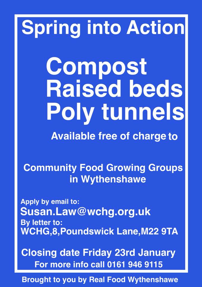 Community Food Growing Groups in Wythenshawe can apply for compost, raised beds and a poly tunnel free of charge.