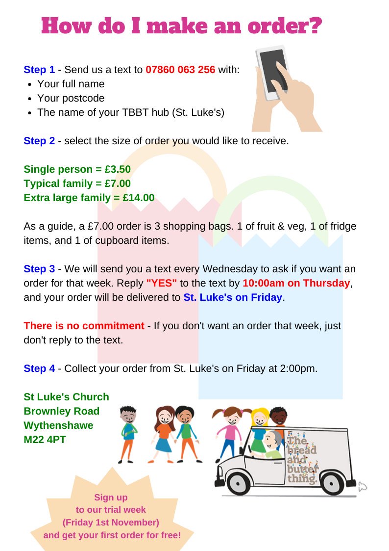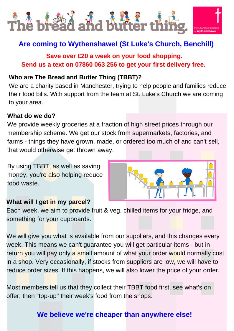 WCHG’s Wythenshawe Foodbank have set up a new discount food membership partnership scheme called ‘The Bread and Butter Thing’ with deliveries commencing 15/11/19.