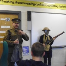 The Young People did a lot of research to gather their evidence. They visited local WW1 graves, the Imperial War Museum, the newly refurbished Manchester Central Library to examine the archives, The Lowry Theatre to see War Horse and even the National Football Museum to discover how important women’s football became during the war. Highlights of the project included a Q & A session with a local ‘older people’s’ group to get a perspective on war, a poetry workshop led by a theatre company and a visit by an army corporal who told the story of the war from the perspective of Private Tommy Atkins.