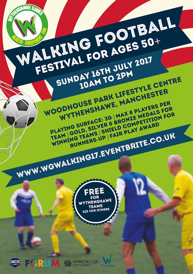 As part of the Wythenshawe Games, a Walking Football Tournament is taking place at Woodhouse Park Lifestyle Centre on the 16th July 2017.